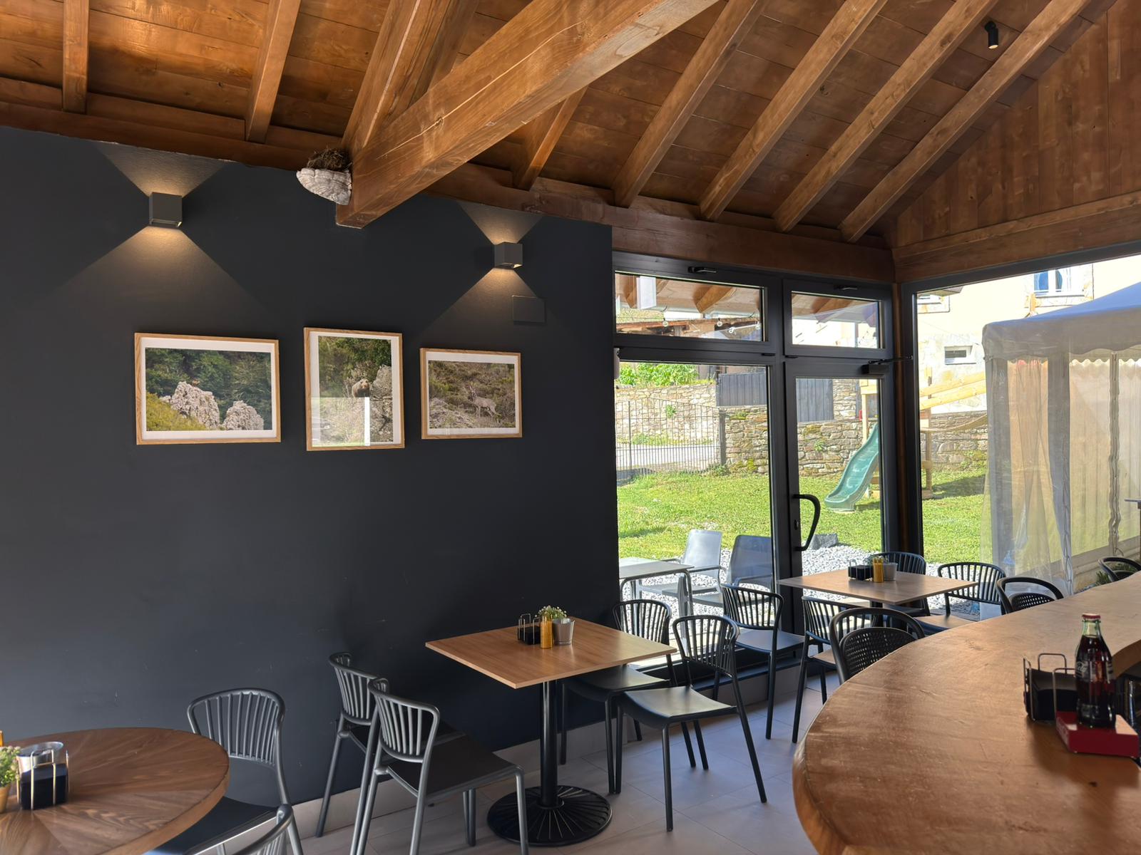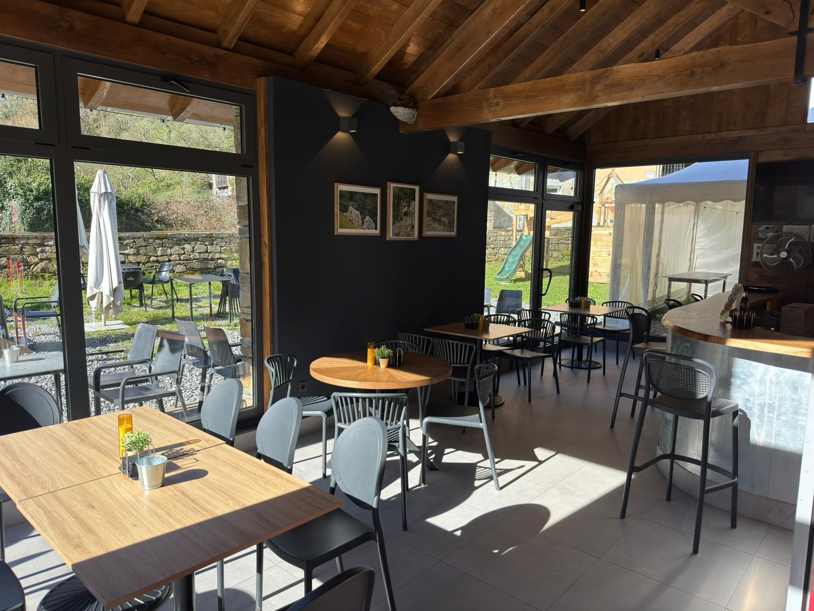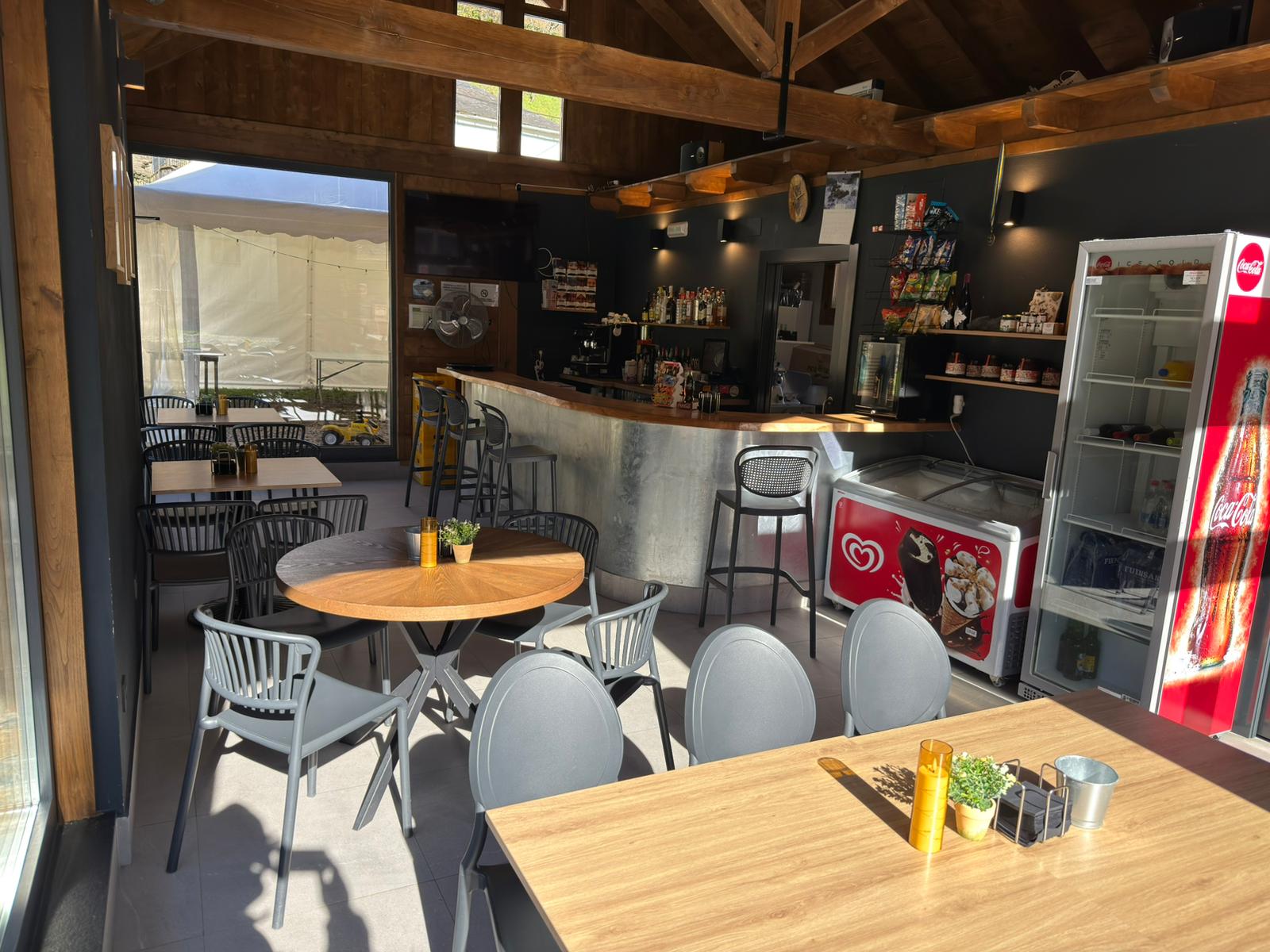 Bar Cafeteria con carta de tapas para picar, carnes y algún plato de cuchara, venta de productos de la zona. Amplia terraza y carpa habilitada para grandes eventos.